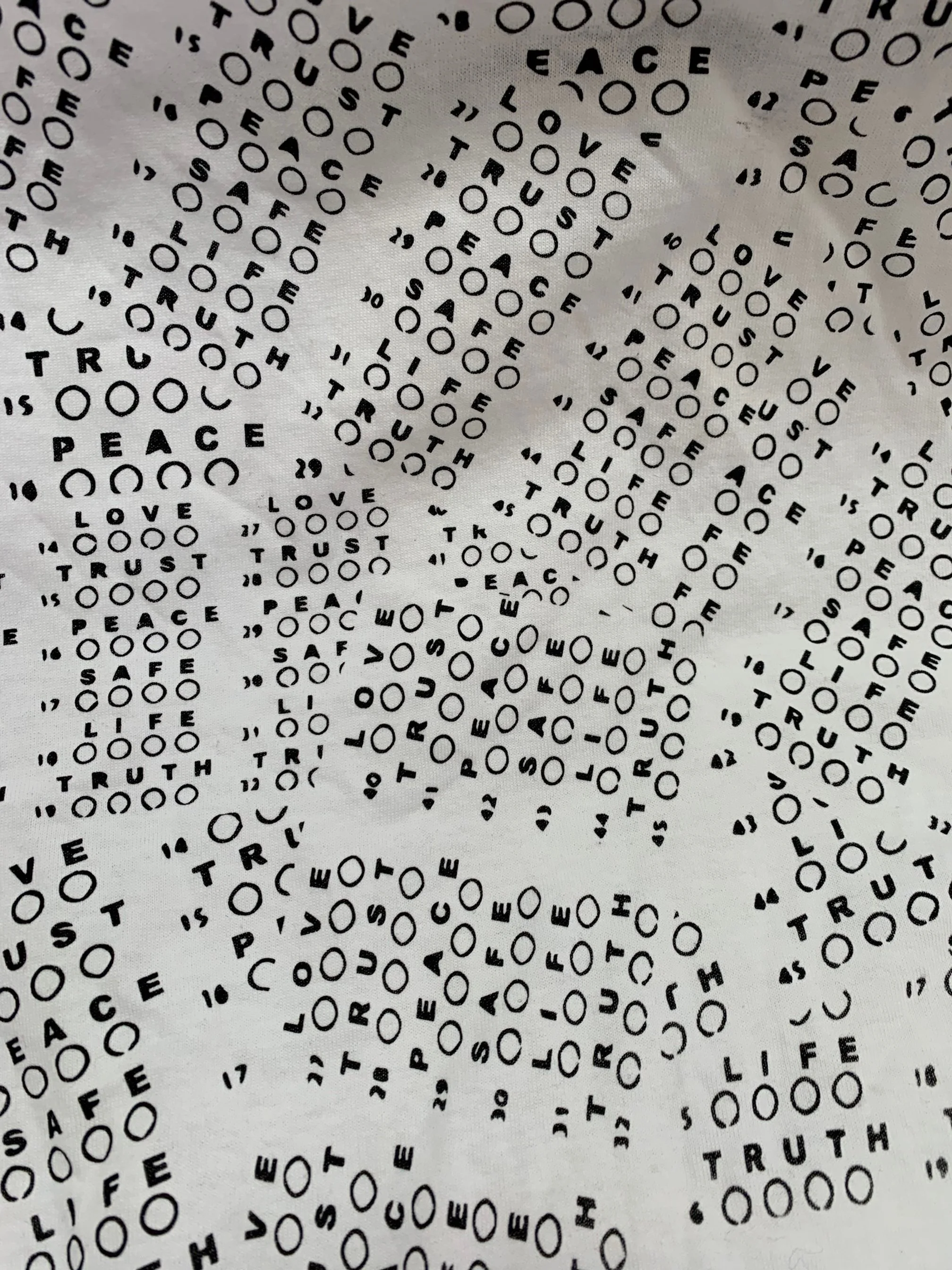 This typographic textile design uses repeated words—“love,” “truth,” “peace,” “trust”—in an intentionally fragmented and distorted layout, challenging viewers to slow down and question the way we process language. The disruption of form creates a visual stutter that mirrors the real-world difficulty of achieving the ideals these words represent. It’s a strong example of conceptual art-meets-graphic design, where text becomes texture and meaning is embedded in disruption. This piece is ideal for portfolios that aim to blend visual communication with critical thought.
