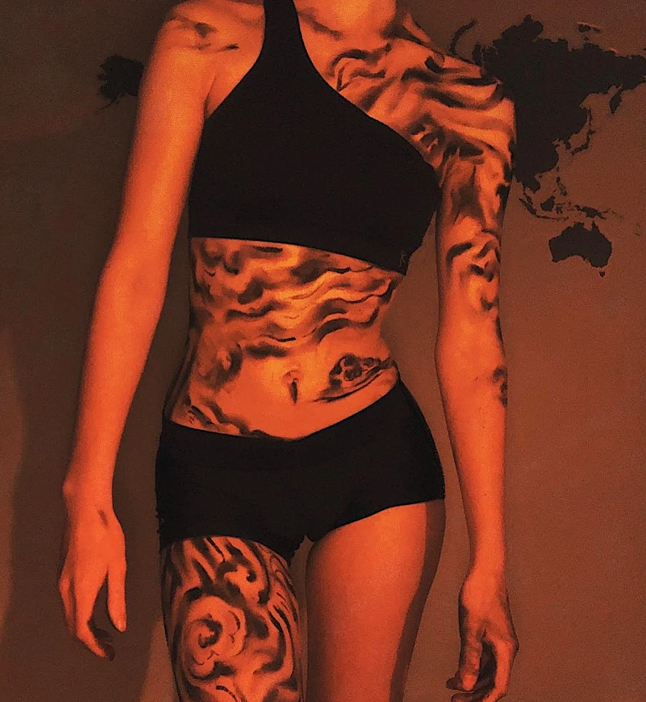 This striking conceptual work transforms the human body into a storytelling surface, using smoke-like ink forms to evoke themes of transformation, identity, and vulnerability. The piece blurs the boundaries between performance, painting, and photography—inviting viewers to consider how personal and political narratives can be expressed through corporeal art. A strong example of how conceptual portfolios can challenge expectations while showcasing technical control and bold creativity.