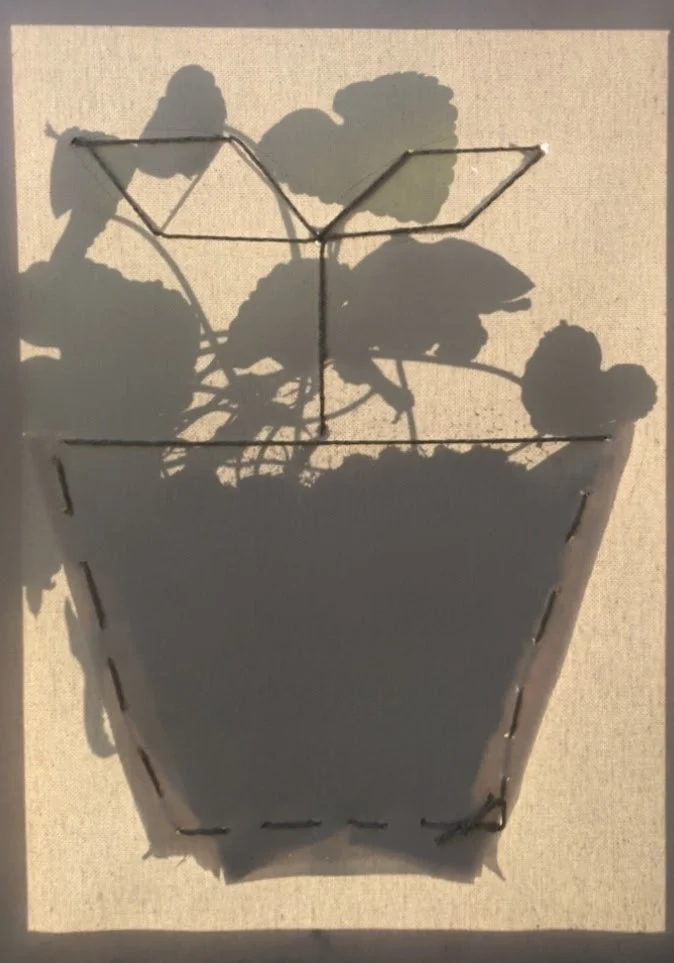 This conceptual piece uses natural light, shadow, and embroidery to transform a mundane subject into a layered visual metaphor. The stitched outline of a potted plant interacts with its shadow, creating a dialogue between permanence and impermanence. By blending drawing, sculpture, and installation, the work invites viewers to reflect on memory, presence, and the boundaries of material form—essential themes in powerful portfolio storytelling.