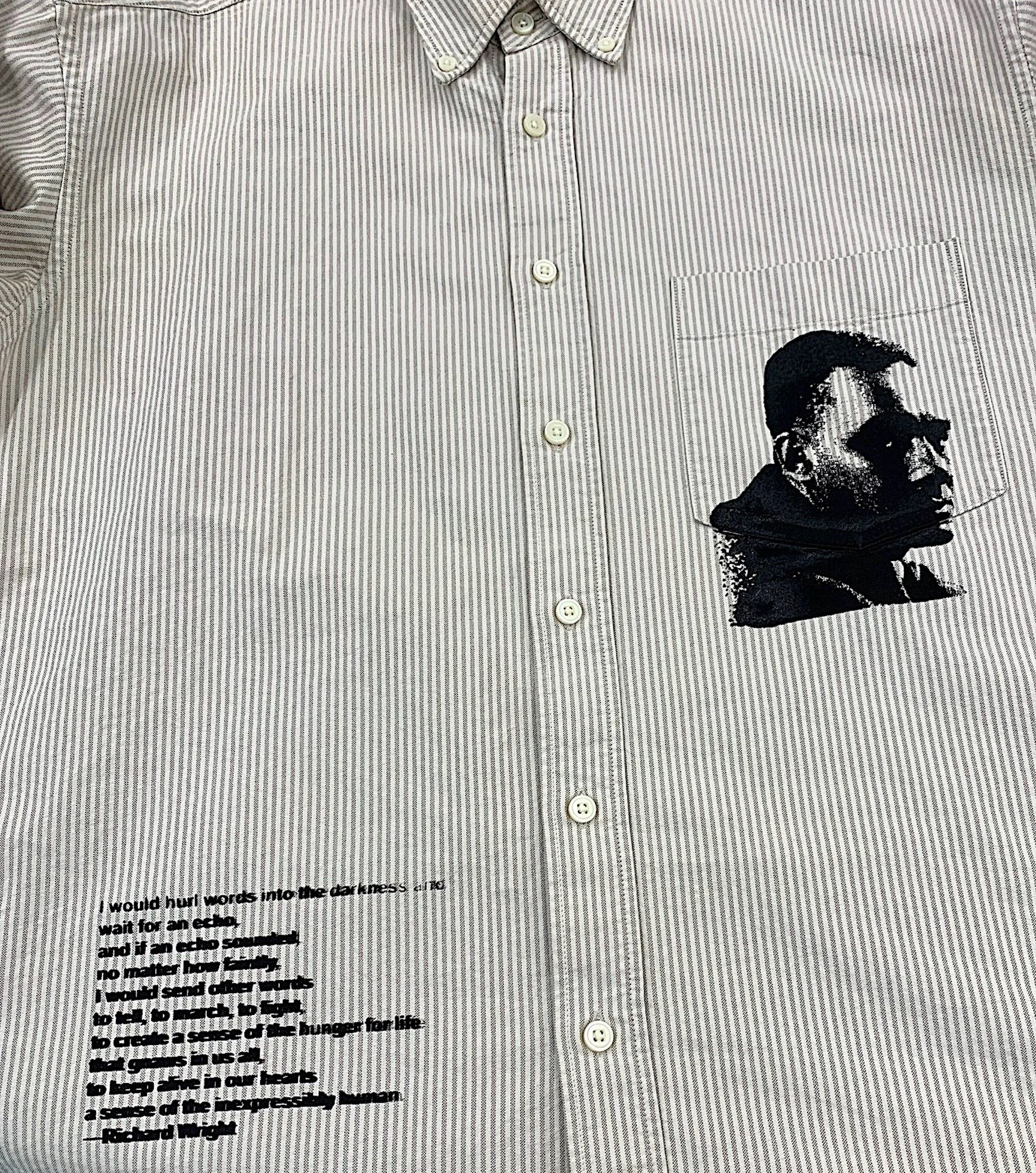 This powerful conceptual design merges fashion with activism, transforming a striped button-down shirt into a wearable platform for social commentary. Featuring a stark monochrome portrait on the chest and a bold poetic excerpt on the torso, the piece addresses themes of race, survival, and self-expression. By placing emotionally charged language and imagery directly onto the body, it forces viewers to confront the intersections of art, identity, and justice—making it a standout example of conceptual design for college art portfolios.